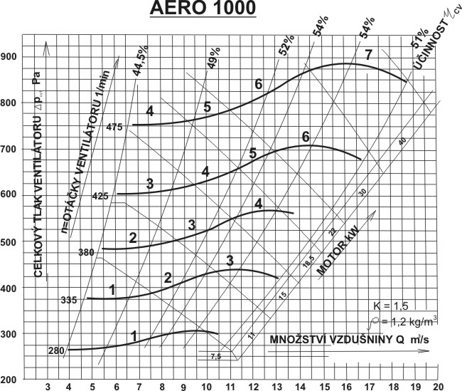 Výkonové oblasti ventilátoru AERO 1000