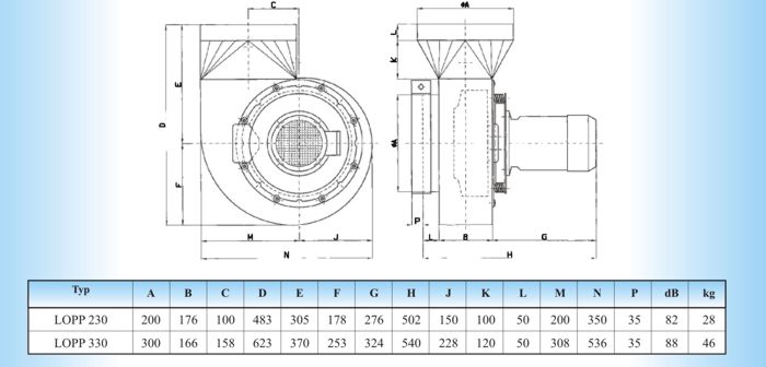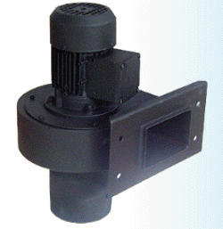 Это радиальные вентиляторы одностороннего забора воздуха с охлаждающим диском, предназначены для вытяжки продуктов сгорания из котлов на твердом топливе (в основном это котлы на дереве). Вентиляторы предназначены для выхлопных газов температурой до +250°C. Привод производится при помощи трехфазного электродвигателя со скоростью вращения 2830 мин-1 соотв. 2845 мин-1 и мощностью 0,25 кВт соотв. 1,1 кВт. Продукты сгорания отсасываются от объекта вентиляции посредством жесткой трубы или металлическим шлангом с диаметром 125 мм или 150 мм.