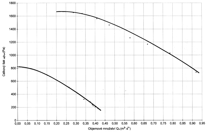n = 2900 min-1, ρ = 1,2 kg/m3