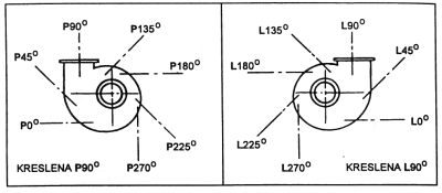 Poloha spirální škříně se určuje při pohledu ze strany sání dle ČNS 12 2001